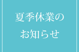 夏季休業のお知らせ休業日:8/9(土)~8/17(日)いつもご愛顧いただきありが…